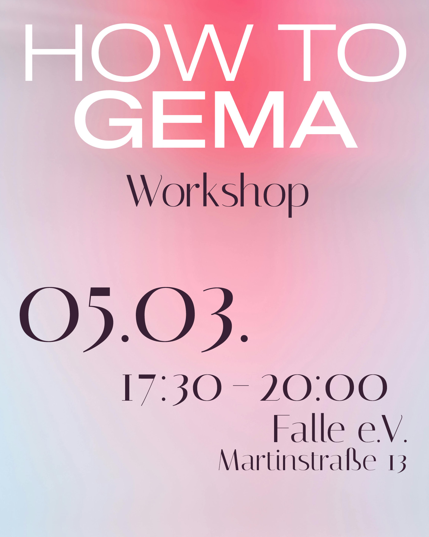 GEMA – ein Thema, das viele junge Kollektive verunsichert. Muss ich anmelden? Wenn ja, wie? Wer zahlt? Welche Tarife gelten überhaupt? In diesem Workshop geben wir einen verständlichen Überblick zur GEMA-Anmeldung für Veranstaltungen mit Musik.